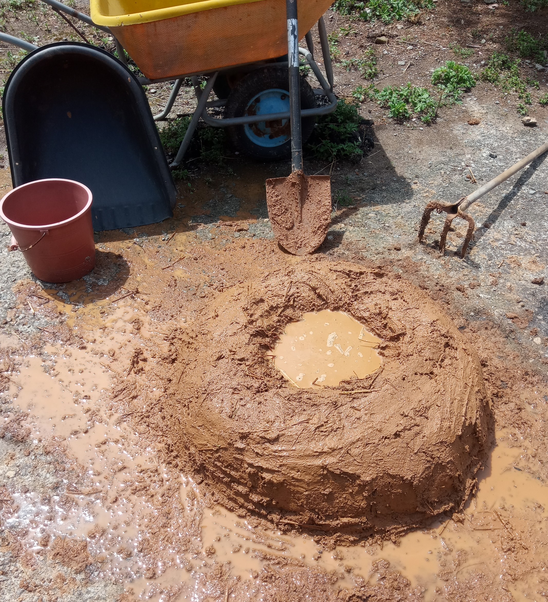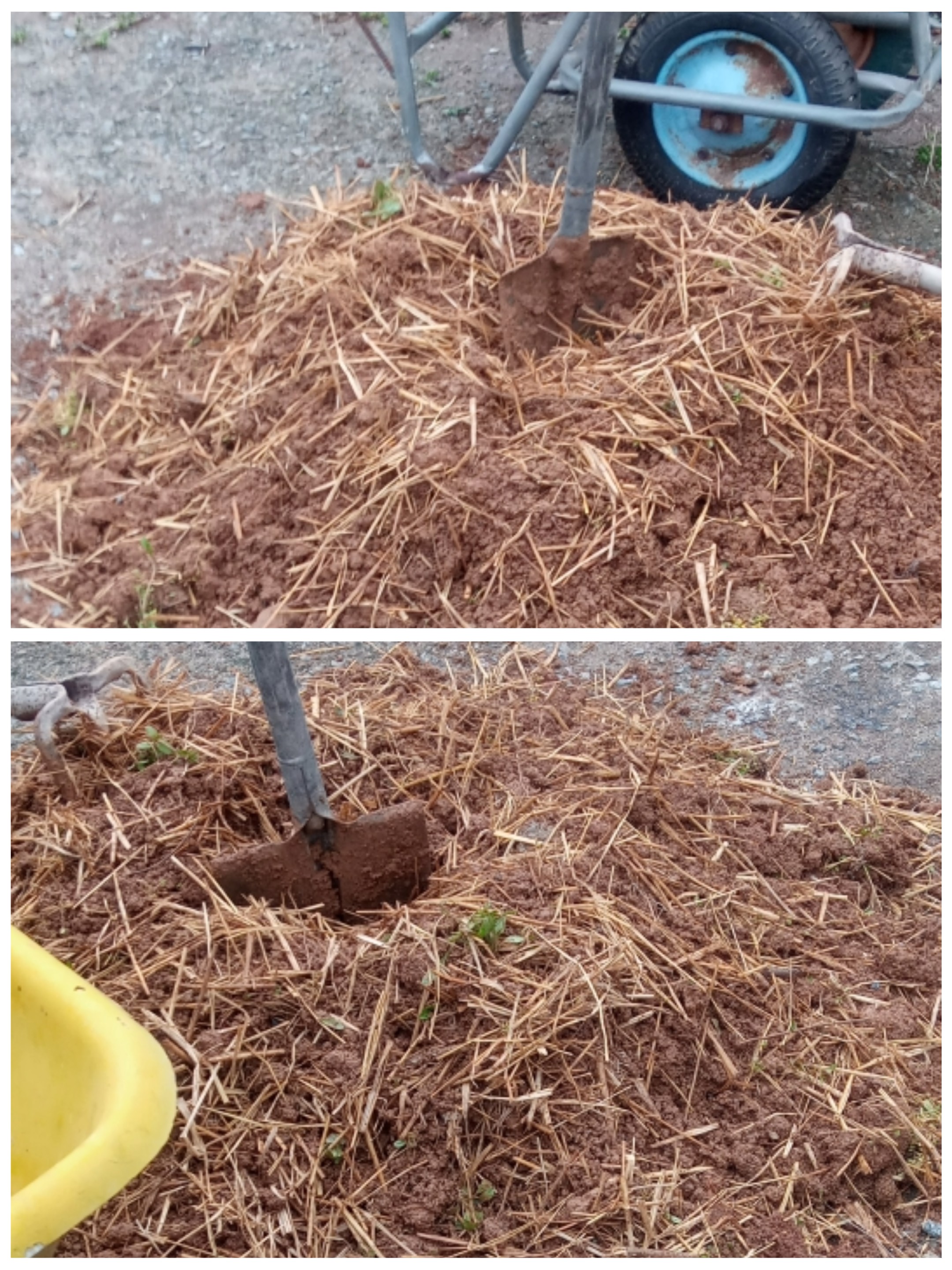 I'm so tired today, so I'm scheduled to work on it tomorrow. There appears to be a lot of rice straw, but in my experience, it becomes insufficient once water is added. The reason for adding rice straw is the wisdom of our ancestors to prevent the yellow clay from cracking and to improve its aeration.